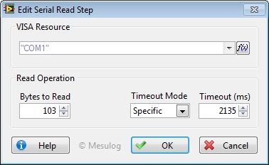 This Step reads the specified number of bytes from the device or interface specified by VISA resource and returns the data in read buffer.
