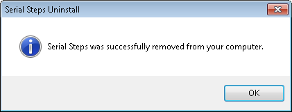 Once the uninstallation is complete, a message is show explaining how to remove Serial Steps submenu from the Tools menu. See known issue #2095 for further information about how to remove the Serial Steps submenu.